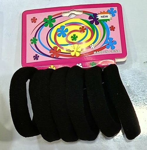 6 Black thick hair ties in each card
